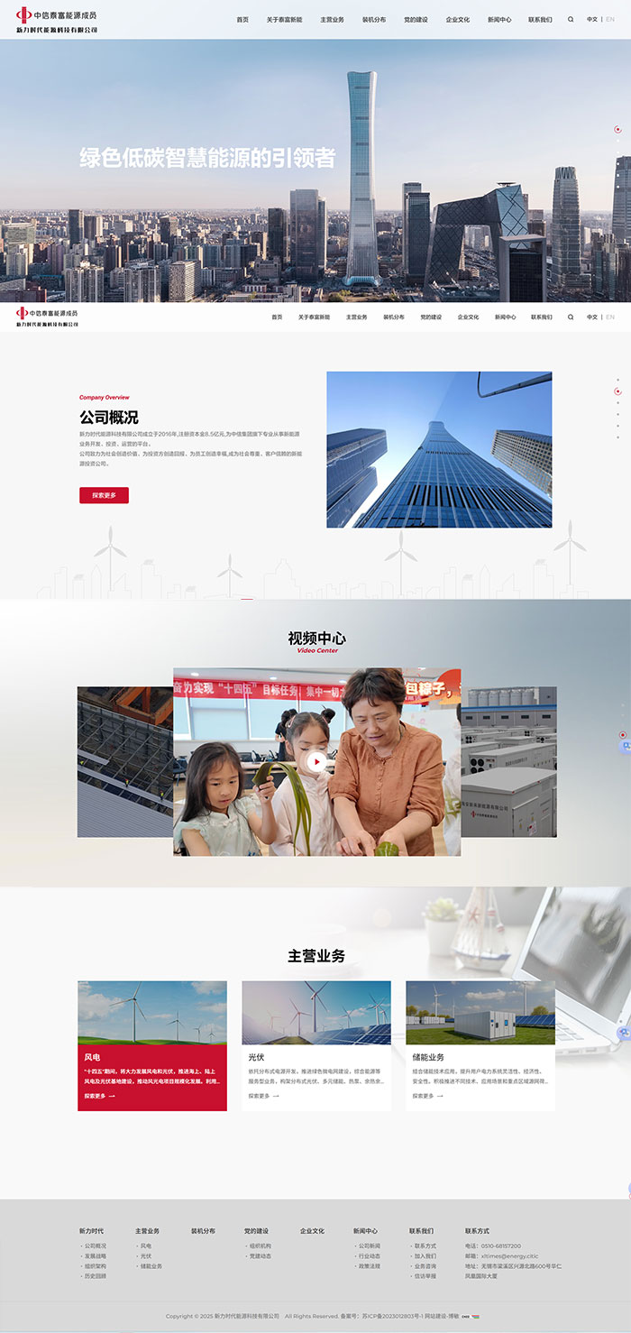 新力時代能源科技有限公司(以下簡稱“新力時代”)的前身是“北京新力時代能源科技有限公司”,于2016年在北京成立,注冊資本金8.5億元,是新力能源開發有限公司(以下簡稱“新力能源”)的全資子公司。2020年6月,新力時代遷至江陰,更名為“新力時代能源科技有限公司”,專業從事新能源業務開發、投資、運營,管理中信泰富旗下國內新能源開發、在建、運營項目。