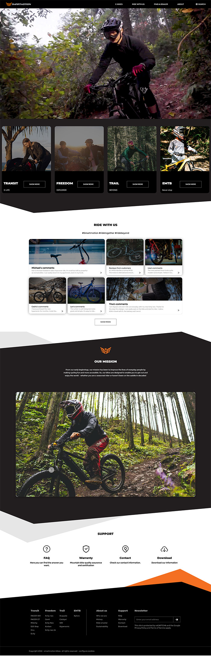 Our story begins in both northern and southern hemispheres, with long-term perceptions saw the opportunity for electric bikes to change the transport landscape for the beautiful world. Joined soon by talented team from New Zealand and China, Smartmotion International was born. Now years on, Smartmotion’s design and production team has grown, along with its sales around the world. With a focus on innovation, performance and affordability the proud team continue to evolve this clean transport technology, changing the lives of everyday people around the globe.